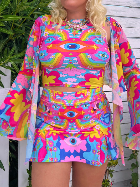 Cosmic Gaze Mesh Long Sleeve Crop Top