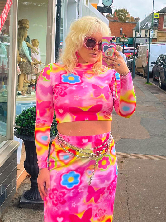 Totally Trippin’ Mesh Long Sleeve Crop Top
