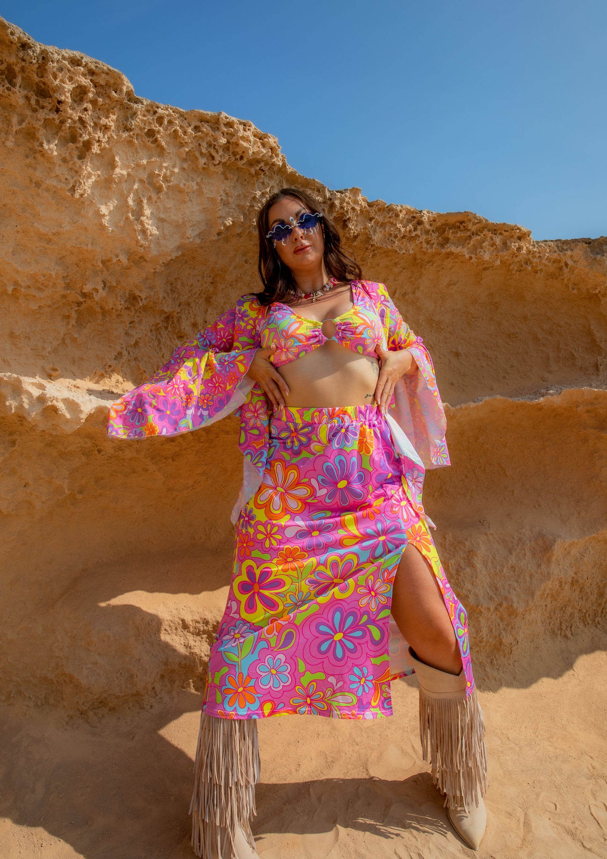 This design is bold, bright, and full of good vibes — with psychedelic swirls and smiley faces that scream festival energy meets 90s rave culture 🌈✨