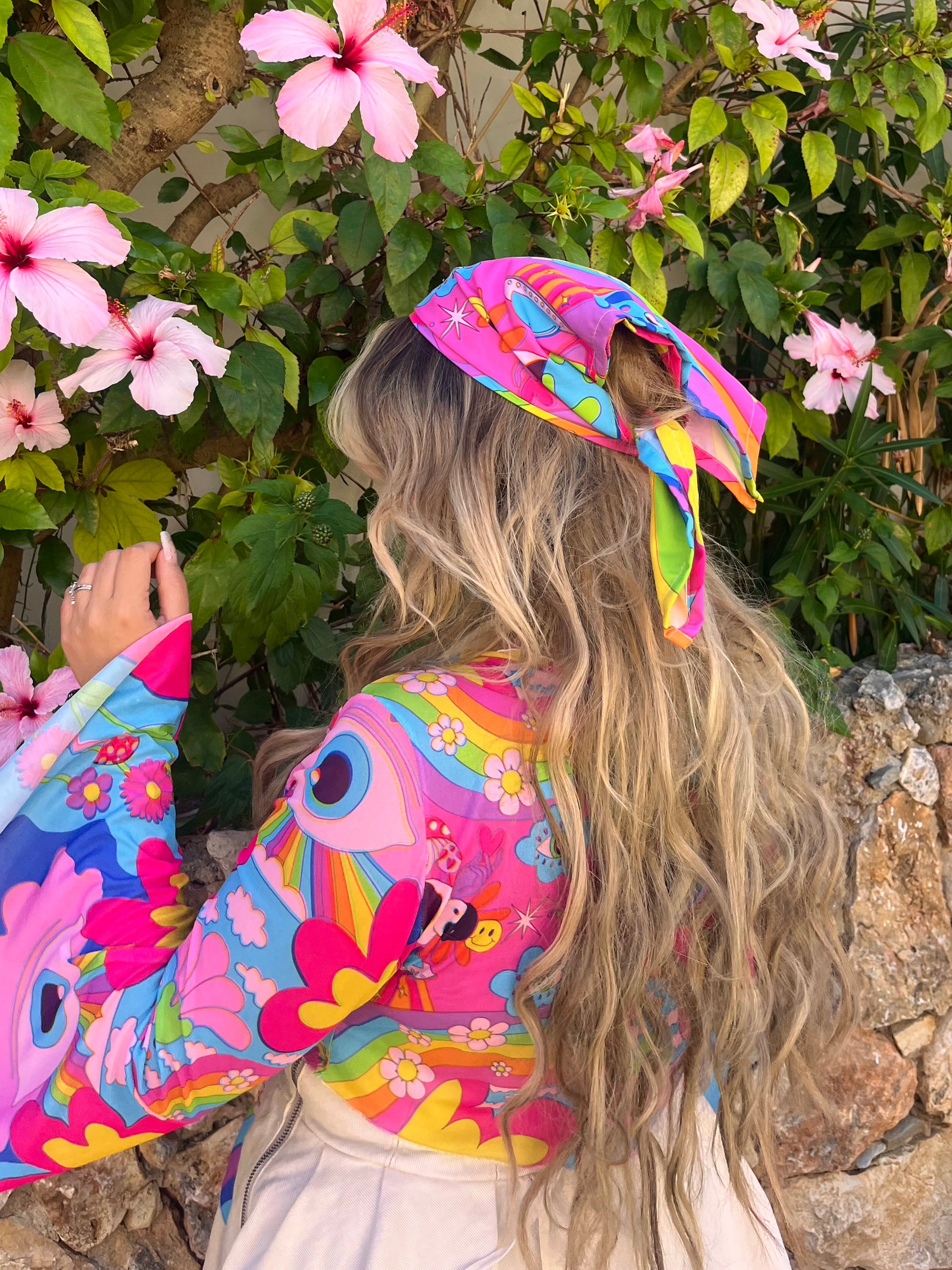 This statement piece features a vibrant, eye-catching pattern that instantly elevates any look. Whether you’re pairing it with a bikini at the beach, rocking it at a festival, or tying it up for an effortless everyday outfit, this bandana is the ultimate versatile accessory. Style it your way — as a headscarf, necktie, bag accent, or even a cute bandeau. Wherever you go, this bandana brings the color, the energy, and the attitude to match.