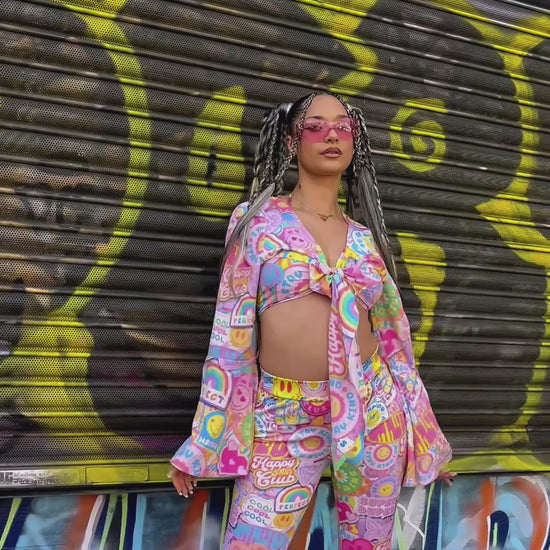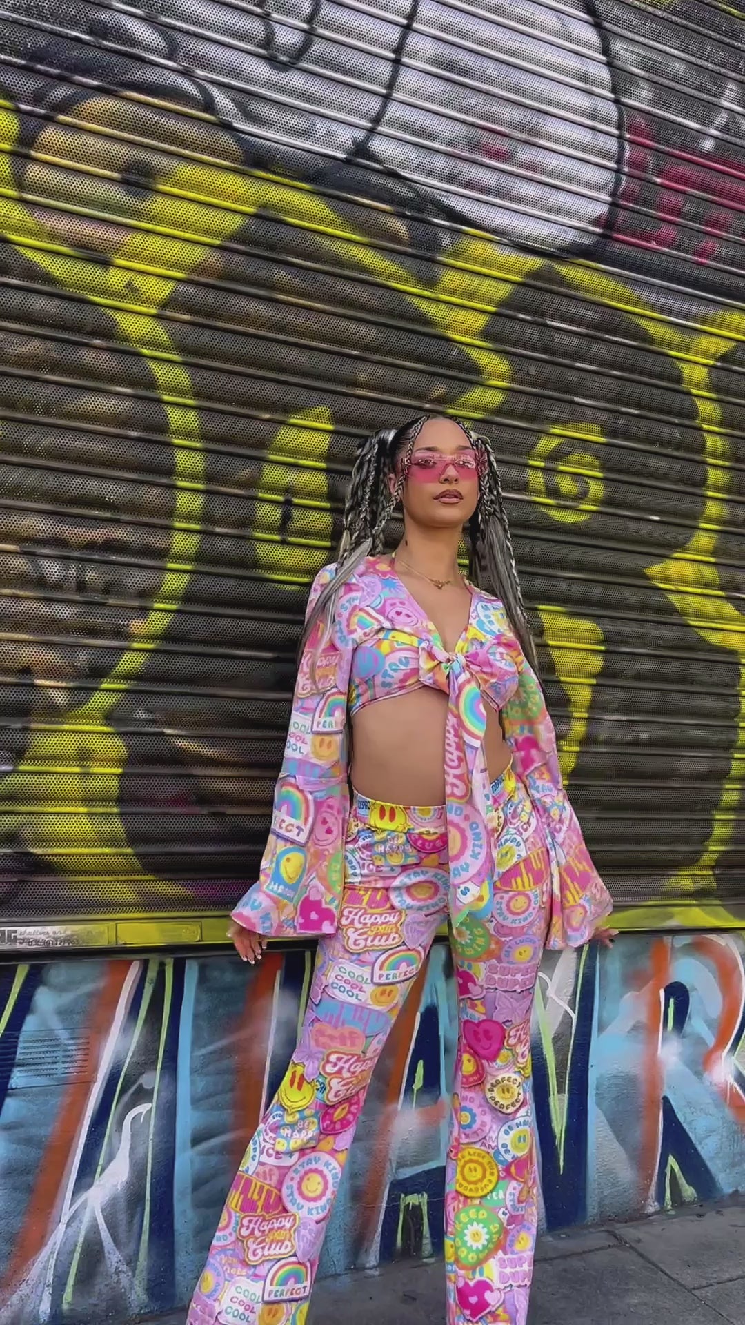 Elevate your wardrobe with these stunning high-waisted bell bottom flares, crafted from premium quality soft touch stretchy spandex. Designed for ultimate comfort and style, these flares feature a bold and vibrant print that’s sure to turn heads. The high-stretch fabric provides a flattering fit and maximum comfort, making them perfect for all-day wear. Whether you're rocking them for everyday errands or showcasing your festival spirit at raves and events, these flares are effortlessly chic and versatile. Step out in style and embrace the perfect blend of comfort and flair with these must-have bell bottoms!